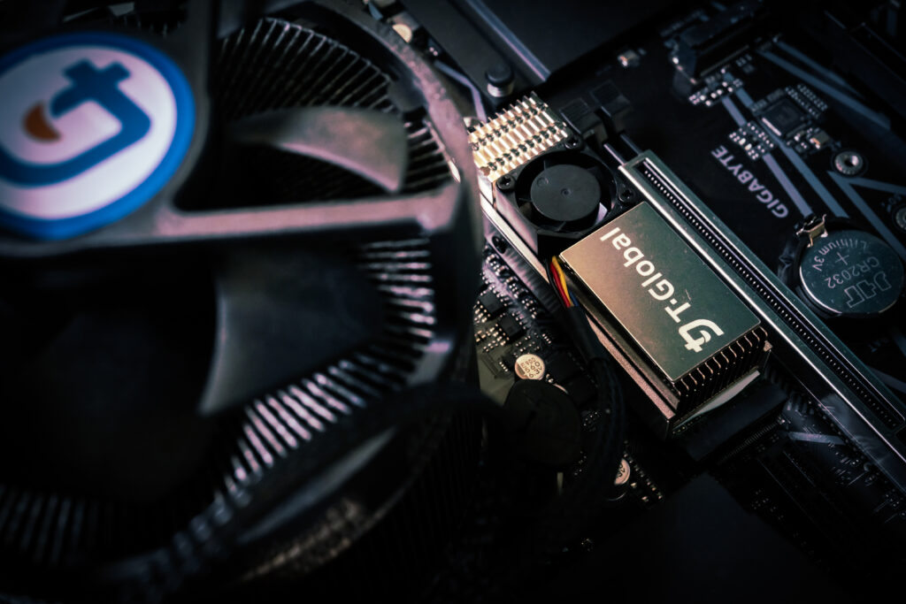 The high-speed cooling fan (17,000 RPM, 17 CFM airflow) actively drives heat away from the SSD. By reducing heat buildup, it prevents throttling and maintains stable performance.